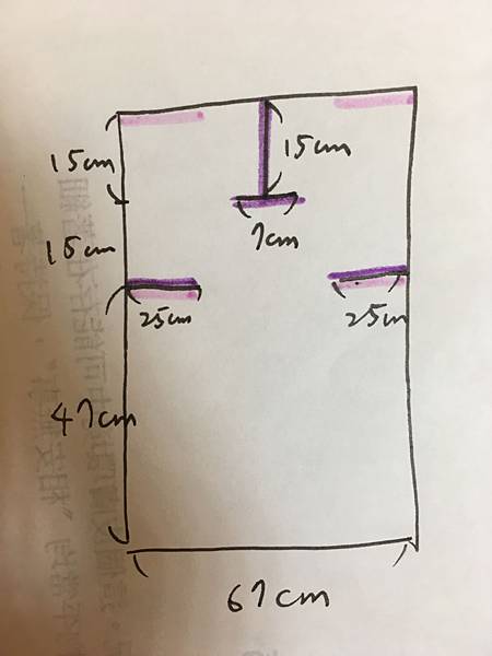 送我圍兜的朋友也很明白一般圍兜的極限,也跟我說:“不然你把它改成全身的好了!”好吧好吧,我做就是了XD 但是我很懶惰,所以我簡單的拿雨傘布這麼做了:紫色的部份剪開,粉紅色的部份縫合成為袖子的部份。